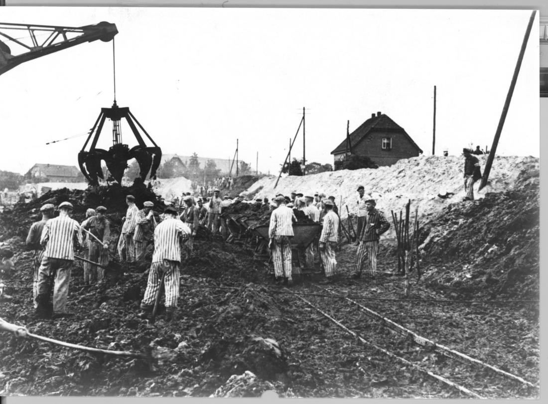 KZ-Häftlinge bei der Ausschachtung des Stichkanals. SS-Foto, nicht datiert. (ANg)