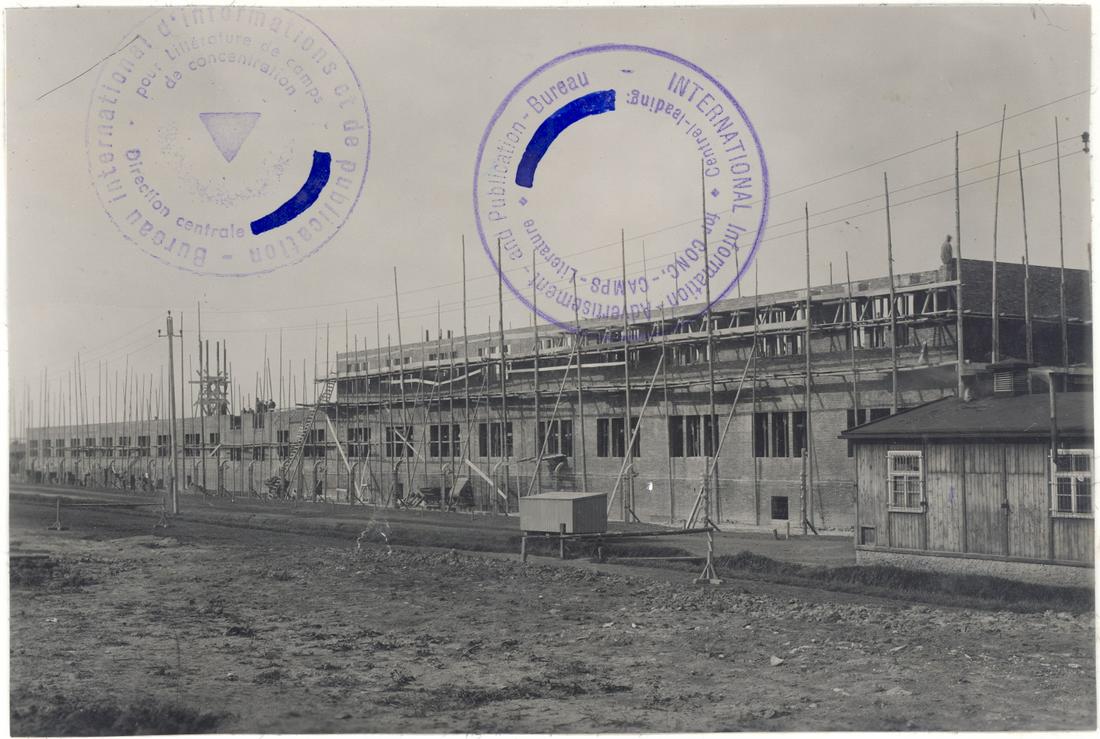 Rohbauarbeiten am östlichen Klinkergebäude. Blick von Nordosten. Rechts im Vordergrund ist die SS-Kantine zu erkennen. SS-Foto aus dem so genannten Masset-Album, nicht datiert. (ANg)