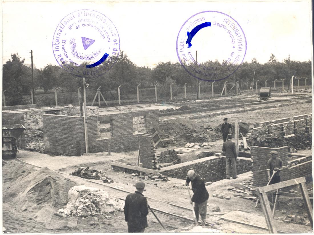 Ausschachtungsarbeiten für die massiven Kopfgebäude der Gewächshäuser. KZ-Häftlinge heben die Baugruben aus. SS-Foto aus dem so genannten Masset-Album, nicht datiert. (ANg)