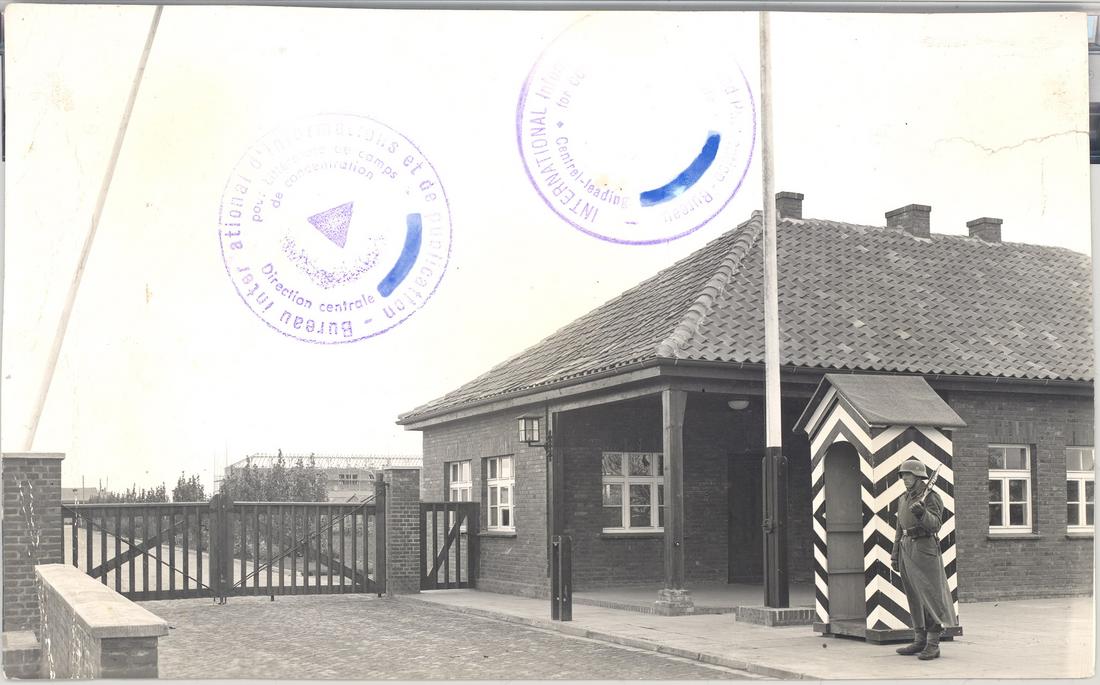 Die neu gebaute Hauptwache am Eingang in das SS-Lager. Im Hintergrund ist das östliche Klinkergebäude im Rohbau zu erkennen. SS-Foto aus dem so genannten Masset-Album, nicht datiert. (ANg)