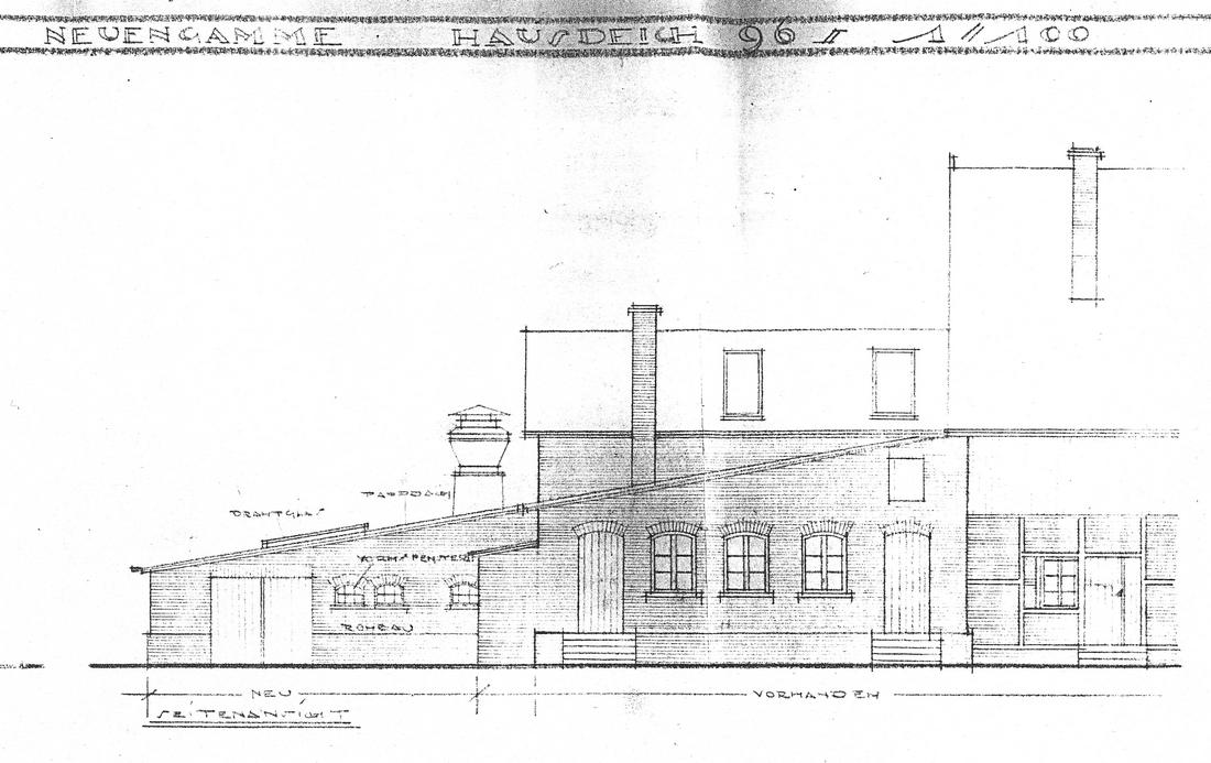 Ostansicht des Hofanbaus am „Vierländer Klinkerwerk“ (dem alten Klinkerwerk). Auszug aus einem Bauantrag, 1928. (ANg)