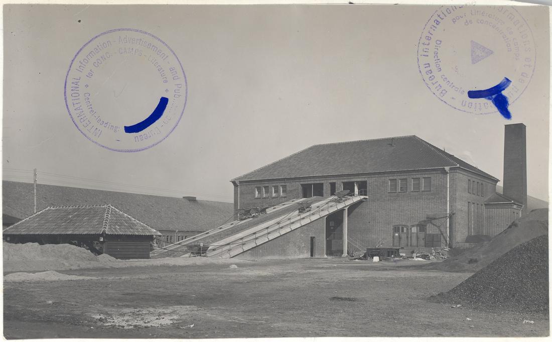 Ansicht des Kesselhauses des neuen Klinkerwerks. Über die große Rampe wurde auf Loren der Ton in die Tonaufbereitungsanlage gebracht. SS-Foto aus dem so genannten Masset-Album, nicht datiert. (ANg)