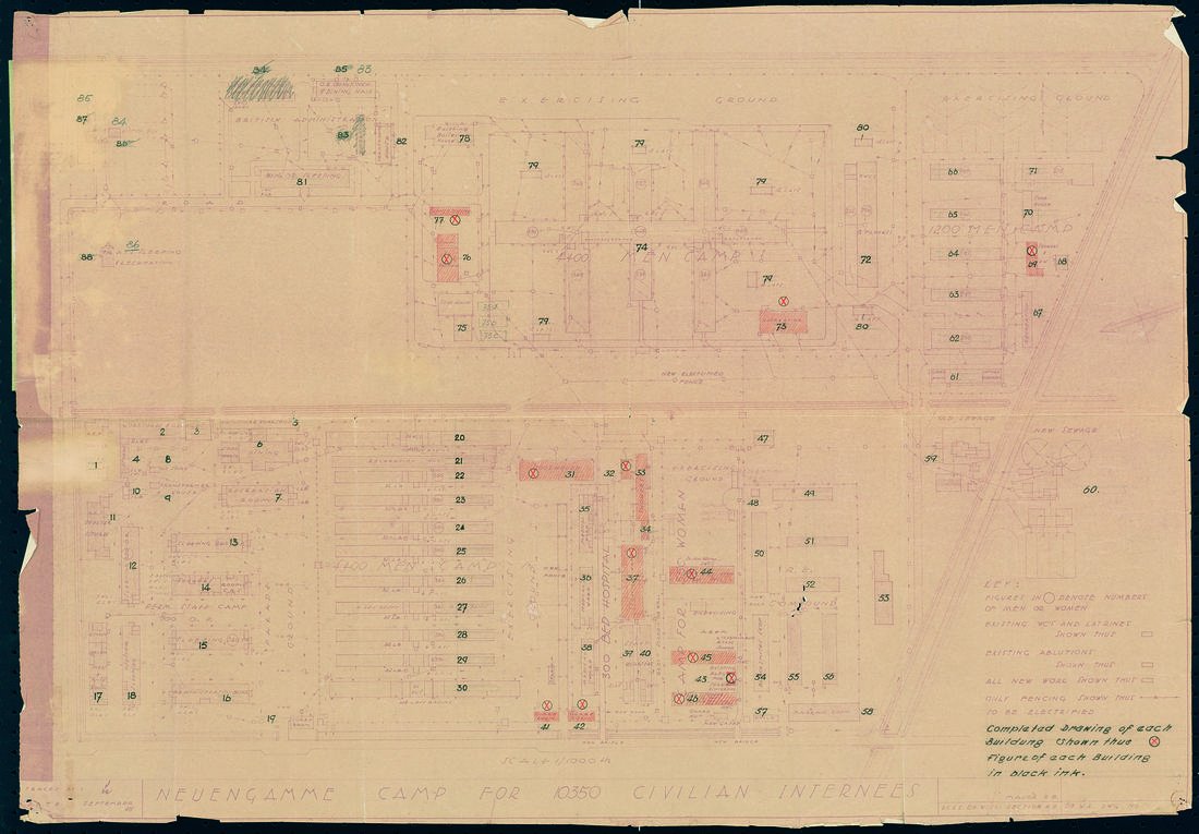 Lageplan des britischen Internierungslagers CIC 6 Neuengamme im Maßstab 1 : 1000. Plan: Deputy Commander Royal Engineers, Work Section 218, September 1945. (ANg)