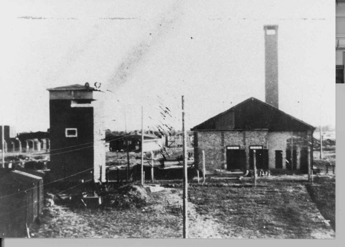 Der südöstliche steinerne Wachturm grenzte direkt an das neue Krematorium. Foto: unbekannt, nicht datiert (Nachkriegsaufnahme). (ANg)