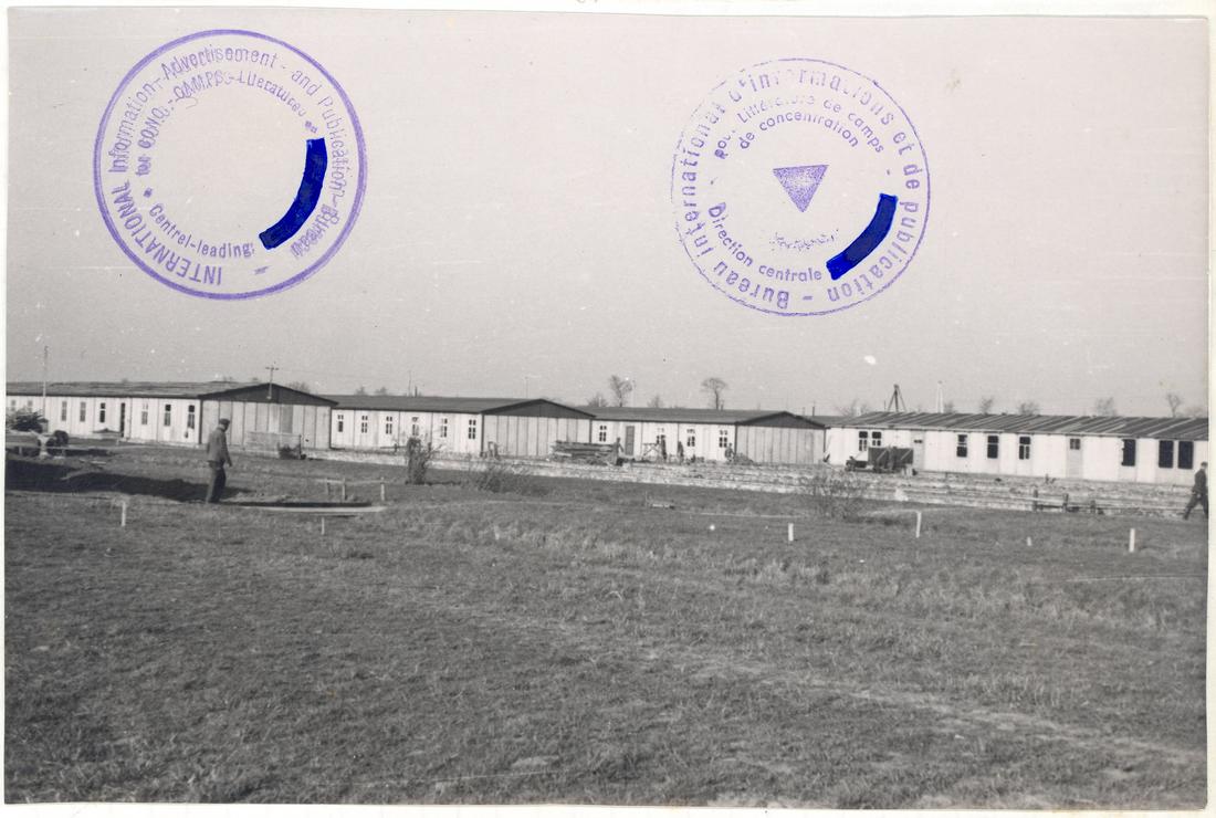 Aufbau der Unterkunftsbaracken im „Schutzhaftlager“ (Häftlingslager). Ansicht der ersten fertig gestellten Barackenreihe von Norden. Im Vordergrund sind die Fundamente der zweiten Barackenreihe zu erkennen. SS-Foto aus dem so genannten Masset-Album, nicht datiert. (ANg)
