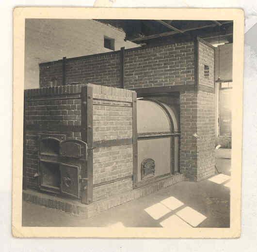 Rückansicht der Verbrennungsöfen. Am linken Bildrand sind die Befeuerungsklappen des rechten Ofens zu erkennen. Foto: unbekannt, nicht datiert (Nachkriegsaufnahme). (Privatbesitz A. C. Lokker)