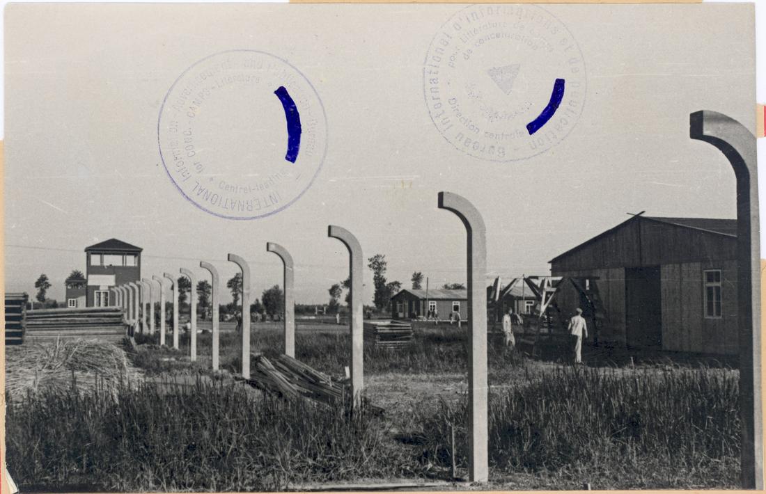 Aufbau des SS-Lagers. Rechts sind (von hinten nach vorne) die Kommandantur, eine Unterkunftsbaracke und die SS-Küche zu erkennen. SS-Foto aus dem so genannten Masset-Album, nicht datiert. (ANg)