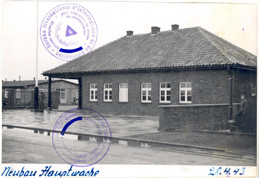 Die neue SS-Hauptwache. Der nordwestliche Wachturm ist noch nicht errichtet. Links ist die Kommandantur zu erkennen. SS-Foto aus dem so genannten Masset-Album, 28.4.1943. (ANg)