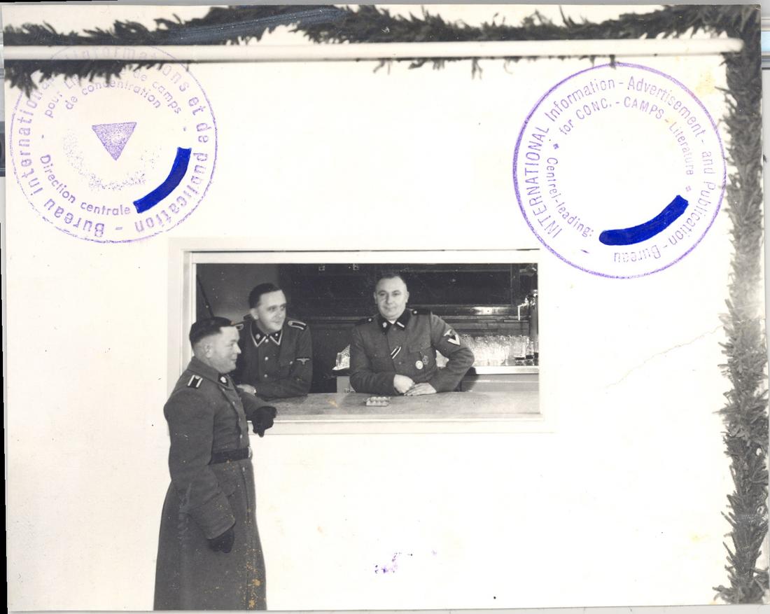 Ansicht der geöffneten Durchreiche und Blick in den Schankraum. Im Hintergrund ist eine Zapfanlage zu erkennen. SS-Foto aus dem so genannten Masset-Album, nicht datiert. (ANg)