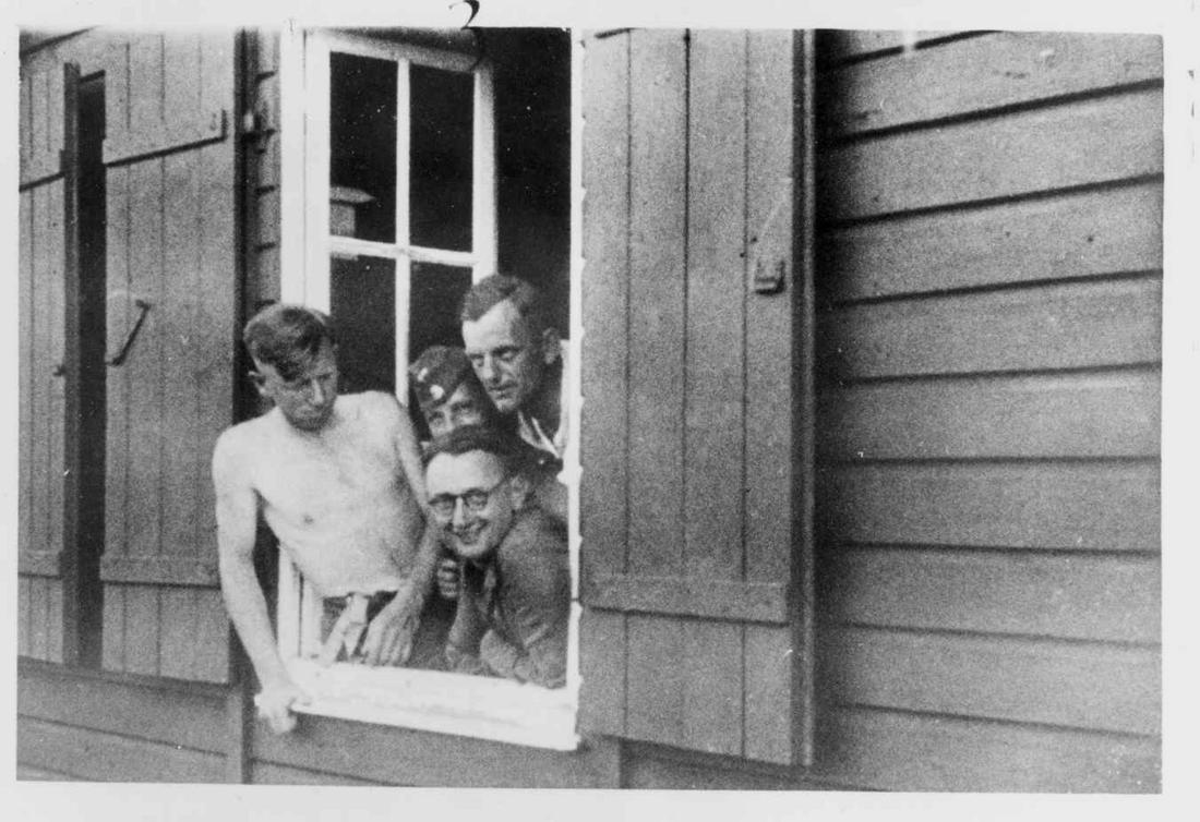 Detailaufnahme eines Fensters einer SS-Unterkunftsbaracke. Die zweiflügeligen Sprossenfenster waren mit Fensterläden verschließbar. SS-Foto, nicht datiert. (ANg)