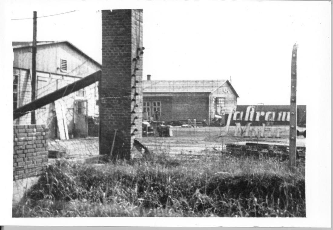 Westliche Ansicht des Industriestandortes Messap und Jastram. Links ist die Produktionshalle 4 der Firma Messap und in der Bildmitte eine Produktionsbaracke der Firma Jastram zu erkennen. SS-Foto, nicht datiert. (ANg)