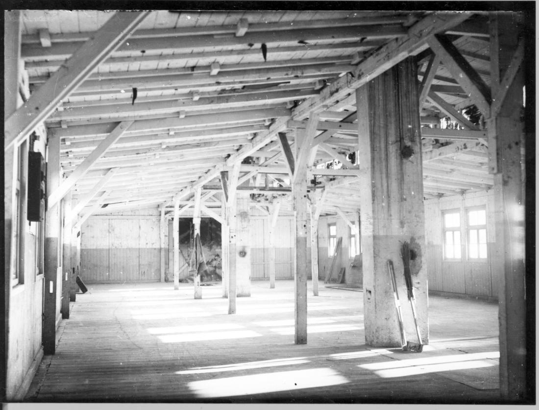Blick in eine Arbeitsbaracke (vermutlich Arbeitsbaracke I). Foto: Strafvollzugsamt Hamburg, vermutlich 1948. (ANg)