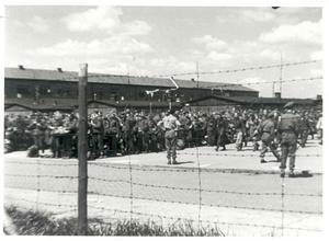 Am 2. Mai 1945 wurde das von der SS geräumte Konzentrationslager Neuengamme von der britischen Armee übernommen. Nachdem die britische Militärverwaltung das Gelände kurzzeitig als Lager für Displaced Persons (DP‑Camp) und als Lager für deutsche Kriegsgefangene genutzt hatte, wurde im November 1945 ein ziviles Internierungslager, das „Civil Internment Camp No. 6“ (CIC 6), eingerichtet. Der Appellplatz wurde genutzt, um dort Zählappelle oder auch die Essensausgabe durchzuführen.