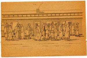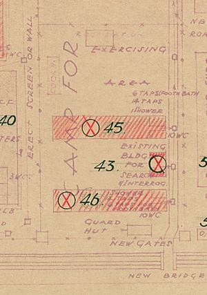 Anfangs wurden diese französischen Häftlinge provisorisch in den Kellerräumen des westlichen Klinkergebäudes und anschließend jeweils für kurze Zeit in verschiedenen Baracken untergebracht.