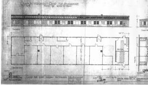 Wie auch bei den übrigen Unterkunftsbaracken lagen an einem Ende der Baracke eine Latrine und einen Waschraum.