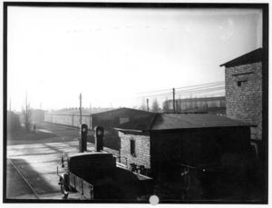 Im nordwestlichen Bereich des SS‑Lagers wurde 1940 mit dem Bau eines massiven, aus Klinkern errichteten Garagenhofes begonnen. Als erste Baumaßnahme wurden ein Transformatorenturm und eine kleine Tankstelle mit zwei Zapfsäulen errichtet. Dann wurden bis zum Frühjahr 1941 die Garagen erstellt. Dieser Gebäudekomplex bestand anfangs aus zwei Teilen: der „Kraftfahrzeughalle“ und den rechtwinklig anschließenden „kleinen Garagen“ mit Büroräumen im ersten Geschoss.