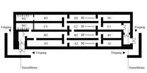 Die Bunker sind so genannte „Vier-Röhren-Bunker“. Sie bestehen aus vier parallelen Röhren, die durch versetzt stehende Querwände in einzelne Zellen unterteilt sind. Dieses labyrinthartige Röhrensystem gab dem Bunker eine größere Stabilität und sollte Druckwellen brechen bzw. den Schaden bei einem direkten Bombeneinschlag begrenzen.