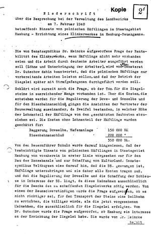 Nach dem Besuch des Reichsführers SS, Heinrich Himmler, in Neuengamme im Januar 1940 und der dabei getroffenen Entscheidung über die Errichtung eines modernen Klinkerwerks, begannen zwischen der SS‑Führung und der Hansestadt Hamburg Verhandlungen über die Zusammenarbeit bei der Klinkerproduktion. Nach drei Monaten wurde am 13. April/6. Mai 1940 unter Beteiligung zahlreicher Hamburger Behörden und der „Durchführungsstelle für die Neugestaltung der Hansestadt Hamburg“ ein Vertrag zwischen dem Deutschen Reich, dem SS‑Unternehmen Deutsche Erd- und Steinwerke GmbH (DESt) und der Hansestadt Hamburg geschlossen.