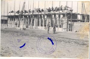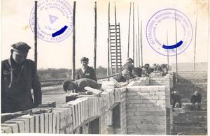 Es kam jedoch trotz des Einsatzes von bis zu 764 Häftlingen auf der Baustelle zu Verzögerungen. Bis Februar 1944 waren lediglich der erste und der zweite Bauabschnitt fertig gestellt. Die Schmiede, deren Anbindung an die Produktionshallen nochmals planerisch überarbeitet wurde, ist nicht mehr fertig gestellt worden, die Bauarbeiten an einem geplanten Schießstand wurden überhaupt nicht mehr begonnen. Die Bauleitung oblag dem Architekten und Leiter der Zentralbauleitung der Waffen‑SS und Polizei Hamburg-Neuengamme (ZBL), Karl Fricke. Als Bauleiter vor Ort bzw. als Leiter der Baukommandos sind jedoch überwiegend Angehörige der SS‑Wachmannschaften eingesetzt worden, die die Häftlinge mit äußerster Brutalität antrieben.